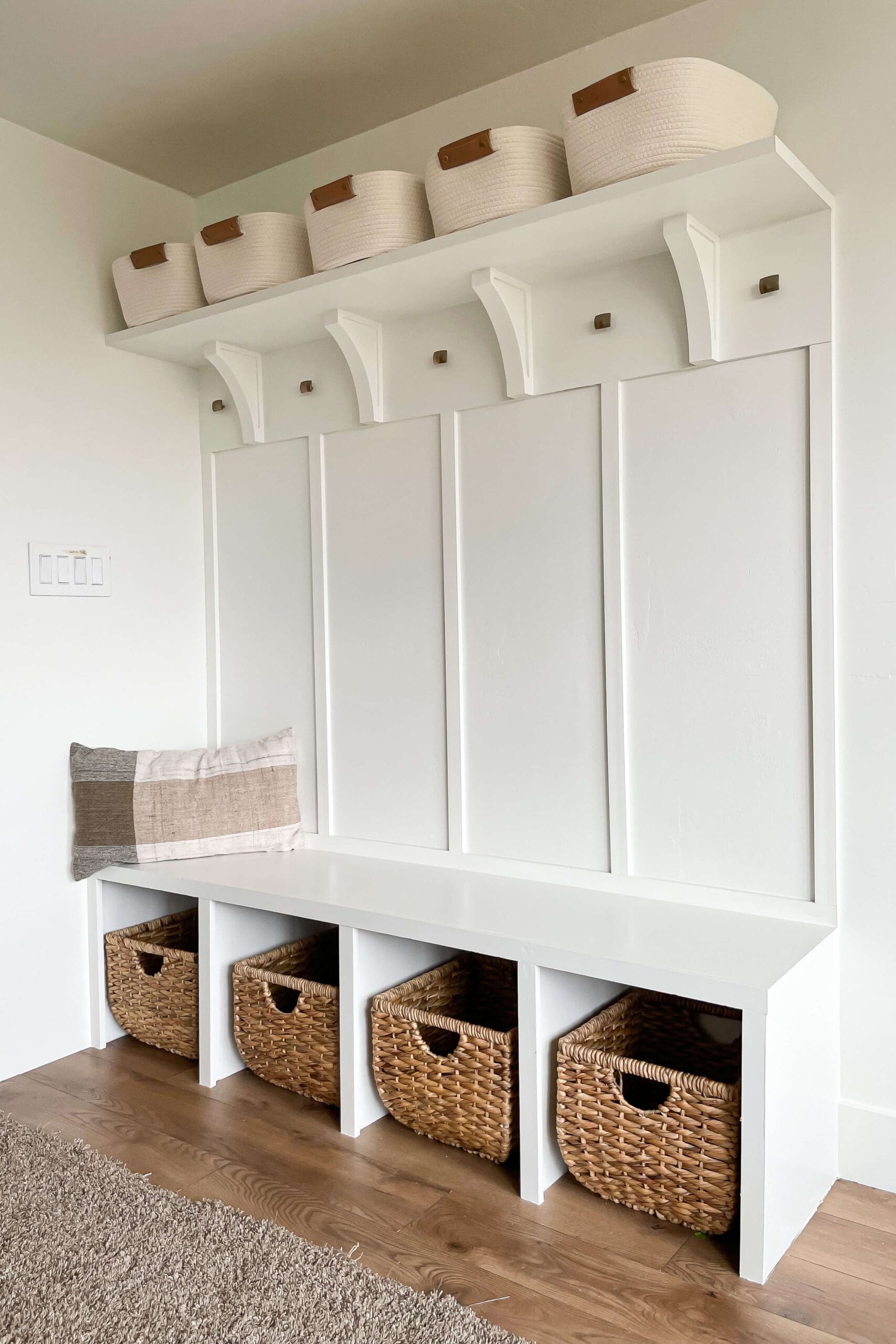 This guide shows how to add storage and finish your mudroom bench nicely.